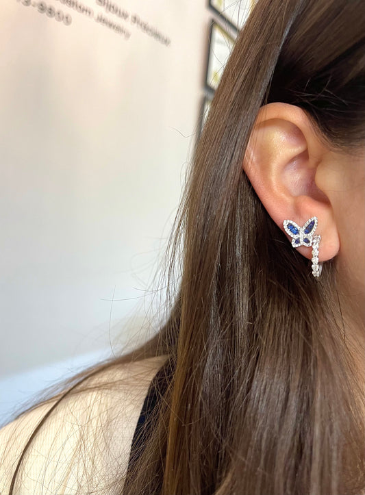 Medium Sapphire and Diamond Baguette Butterfly Studs
