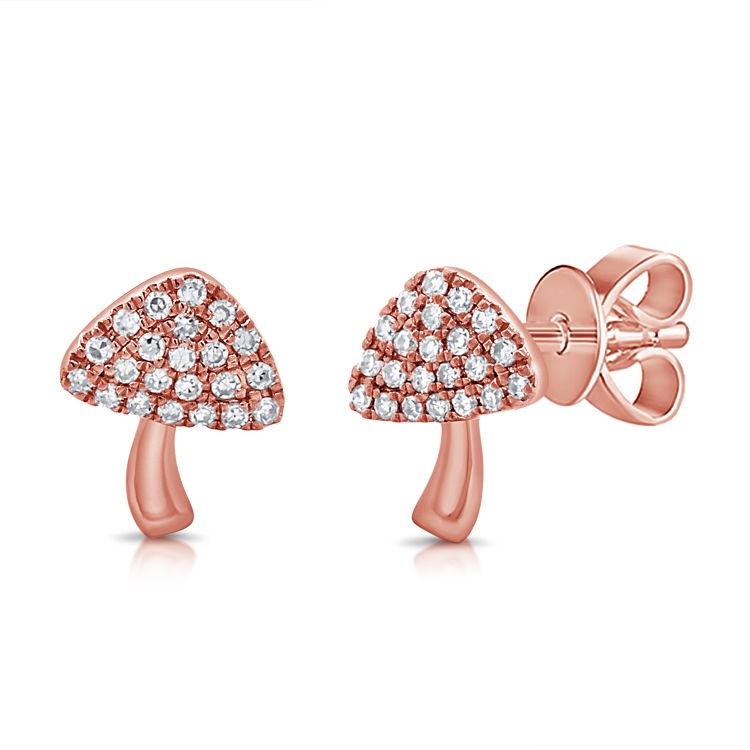 Whimsical and dainty, these mushroom studs feature diamond accents of .10CT. Available in 14K White, Rose and Yellow Gold.